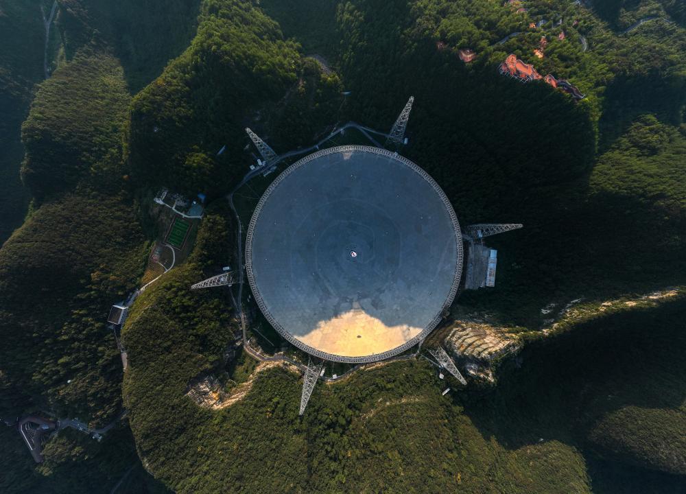 中國天眼在落日余暉中(無人機照片,維護保養(yǎng)期間拍攝,2024年9月25日攝)。