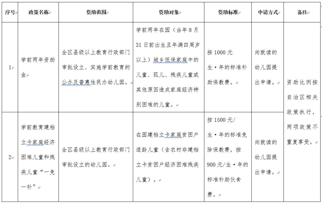 學(xué)前教育資助政策