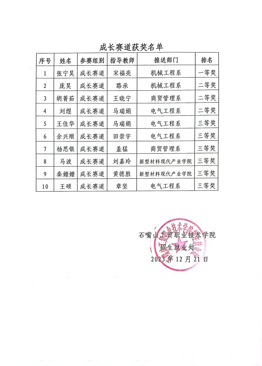 關(guān)于首屆大學(xué)生職業(yè)規(guī)劃大賽石嘴山工貿(mào)職業(yè)技術(shù)學(xué)院校賽比賽結(jié)果的公示