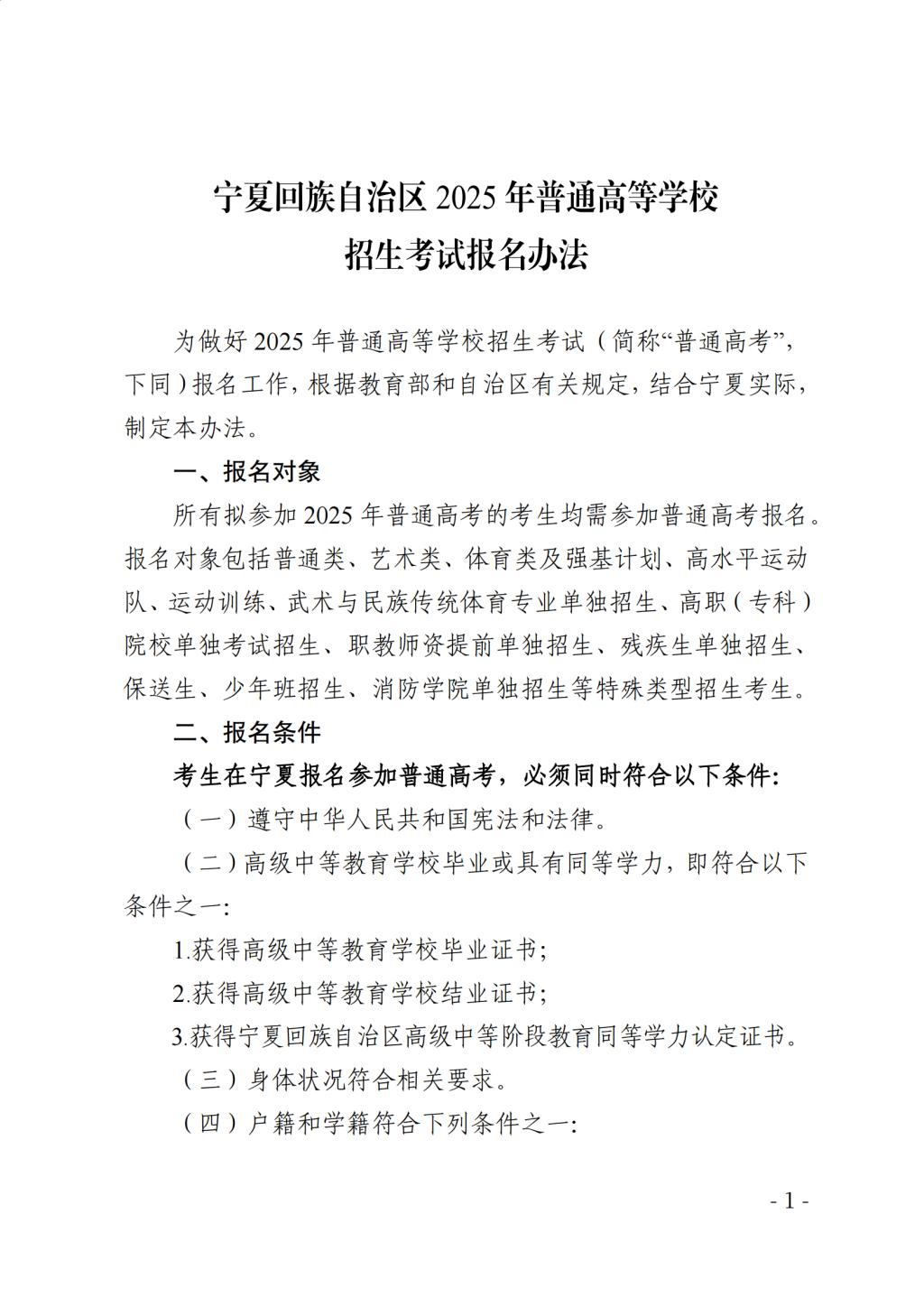 寧夏回族自治區(qū)2025年普通高等學校招生考試報名辦法
