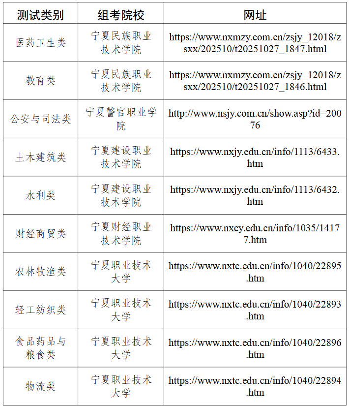 寧夏2026年高等職業(yè)教育對口招生各類職業(yè)技能測試大綱查詢網(wǎng)址